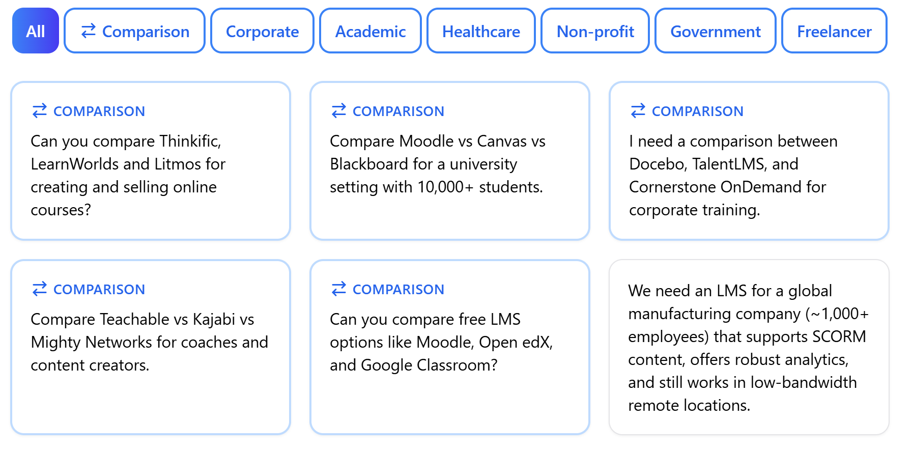Our AI-powered LMS Advisor is designed to take the guesswork and research-heavy process out of choosing the optimal LMS for your goals.