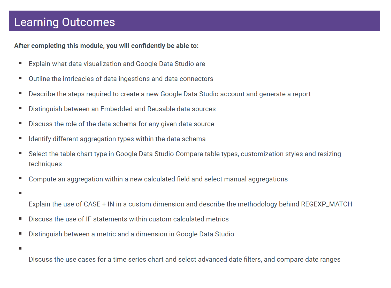 Working collaboratively, we created a 4-hour CPD-accredited certificate program, taught entirely through Looker Studio (formerly know as Google Data Studio).